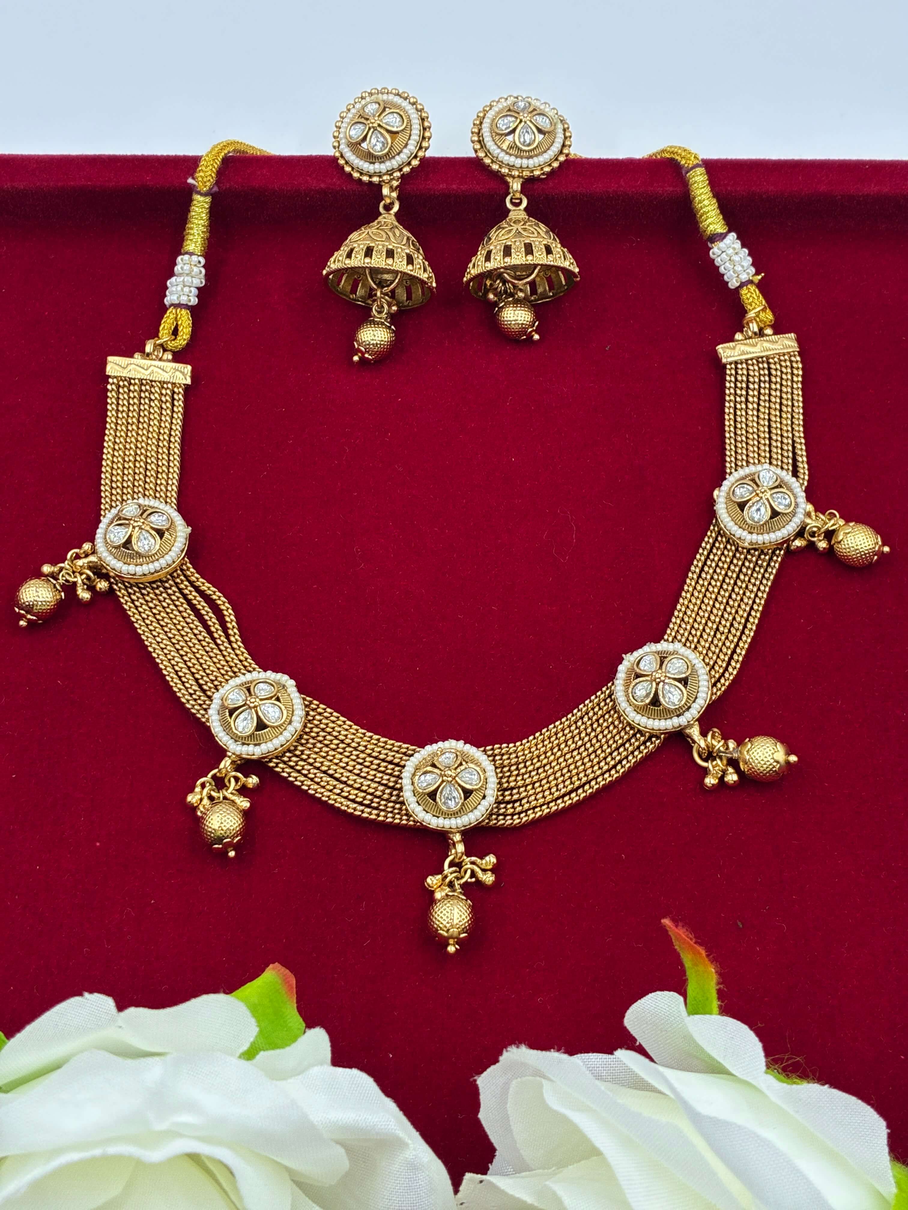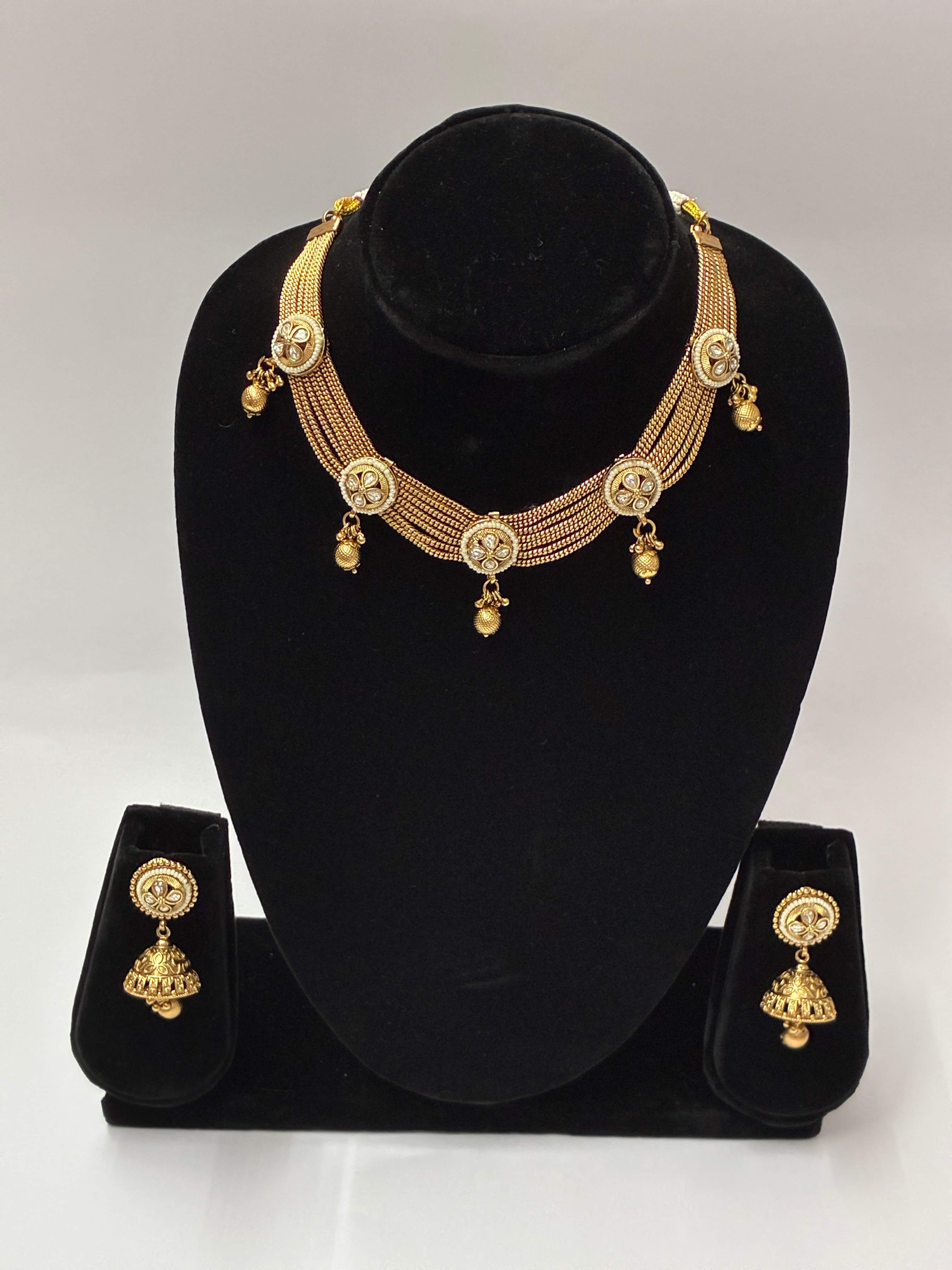 Product type: Antique Elegant Gold Pearl Round Stud Necklace Set