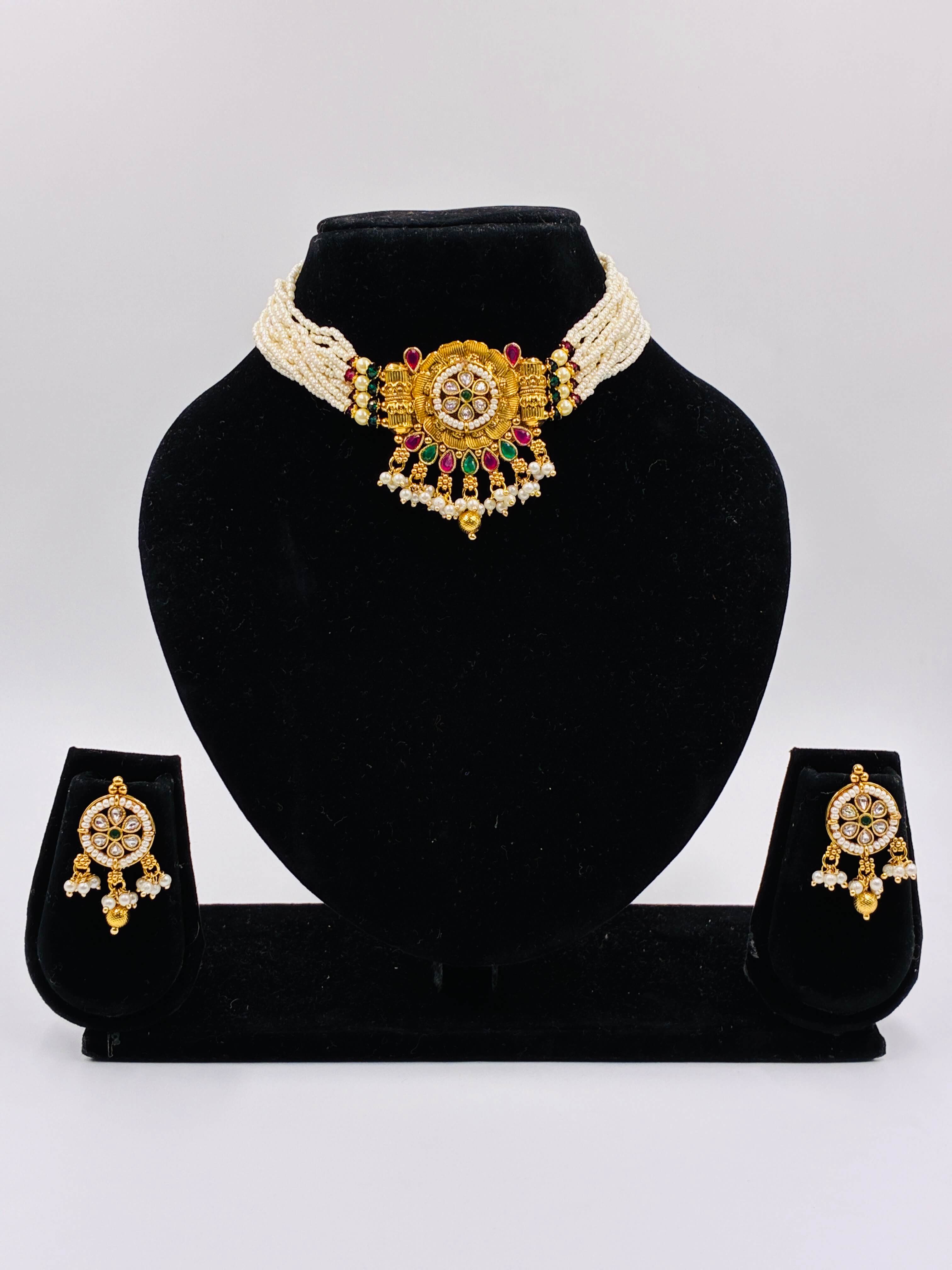 Antique Pearl Tassel Choker Set