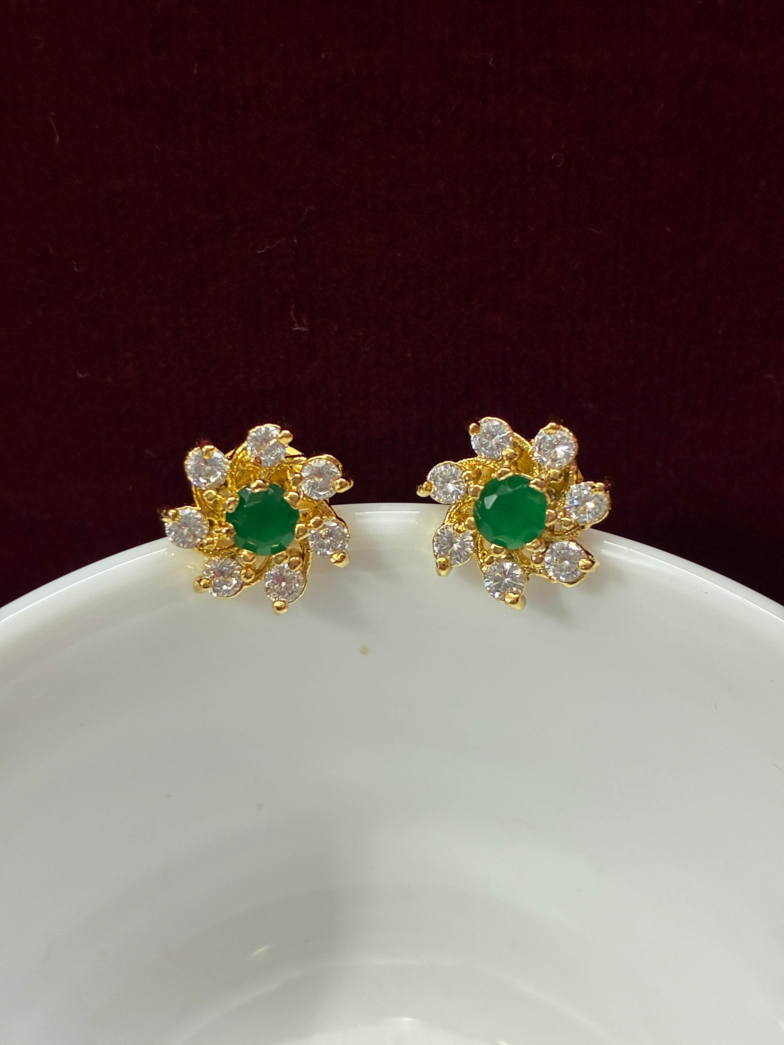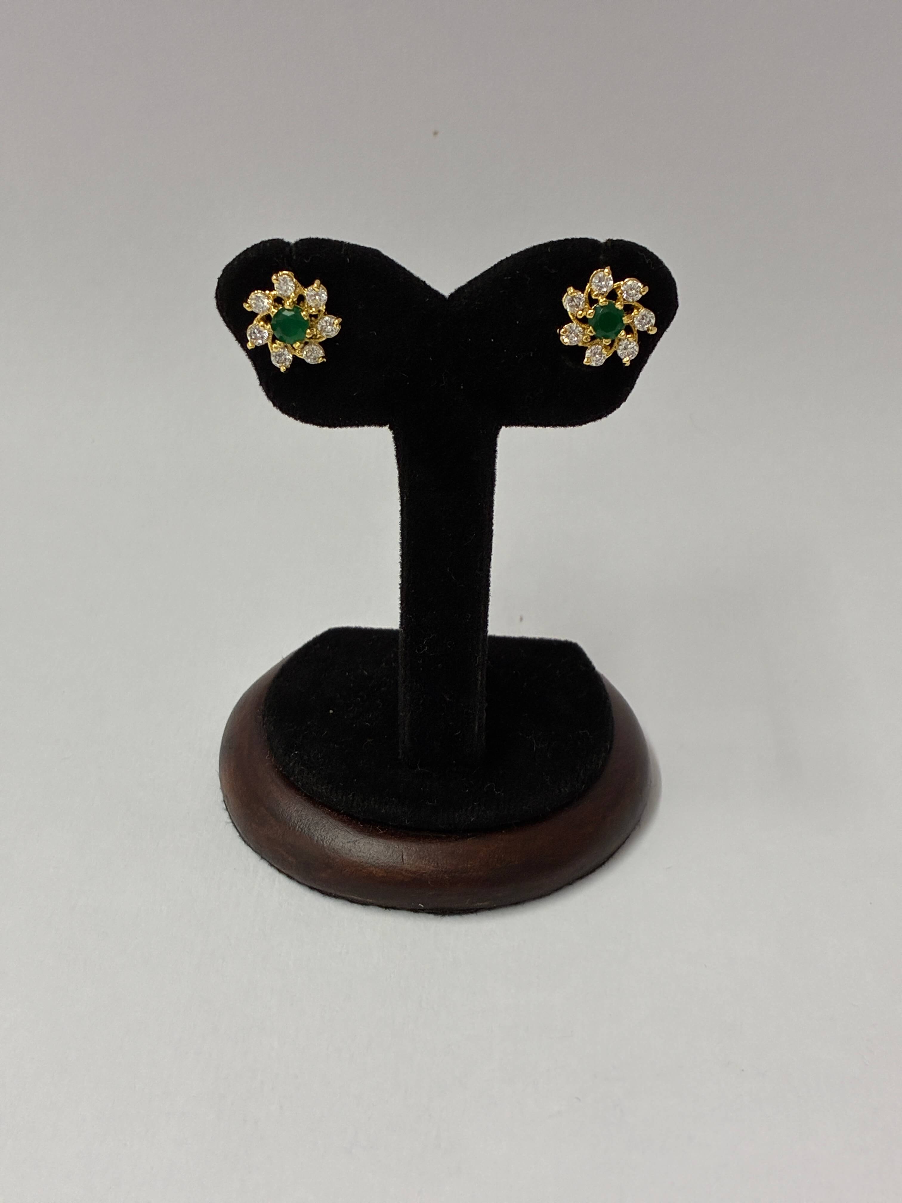 CZ Emerald Green Traditional Seven stone Stud