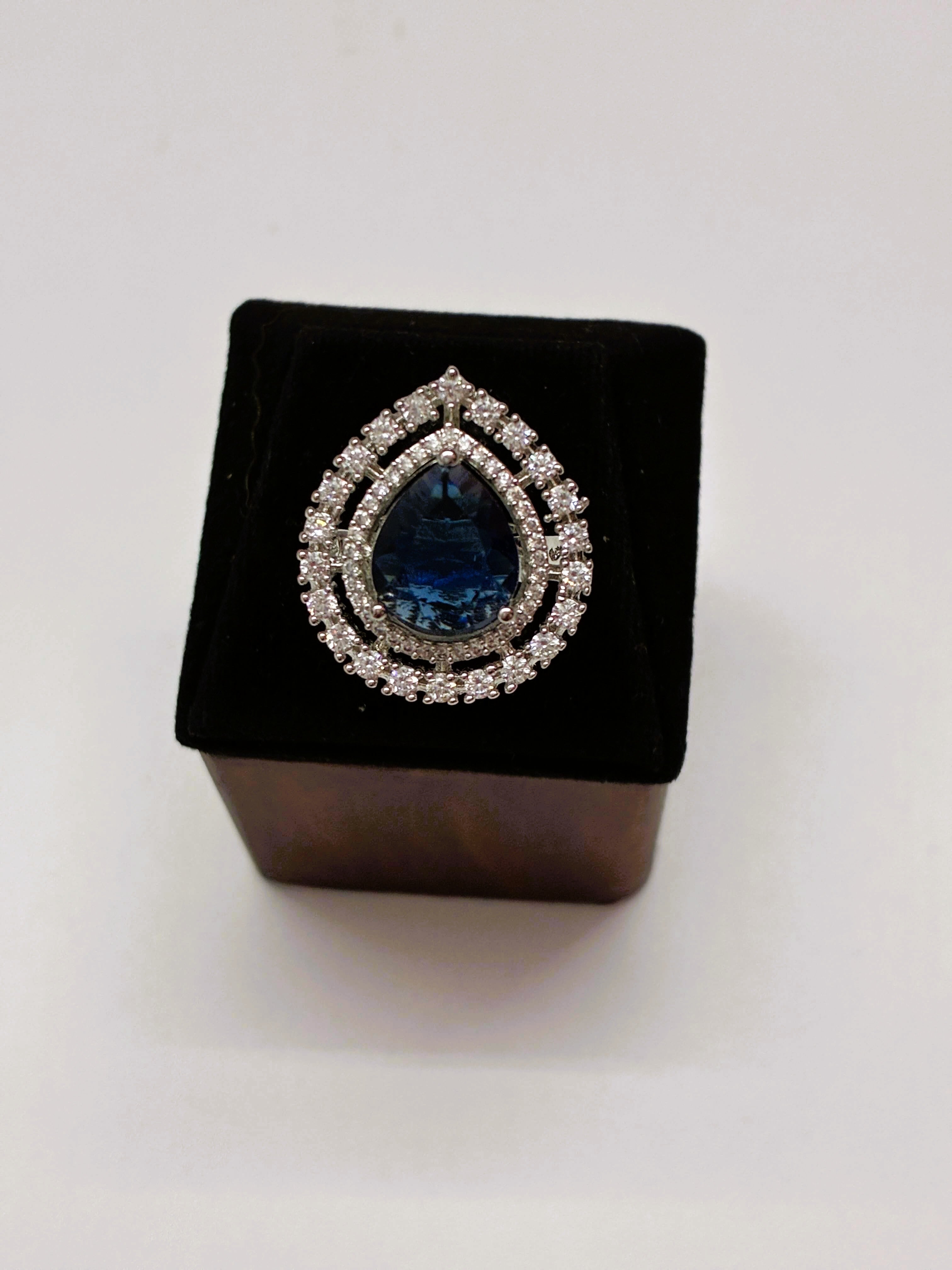 CZ Indigo drop designer Finger Ring