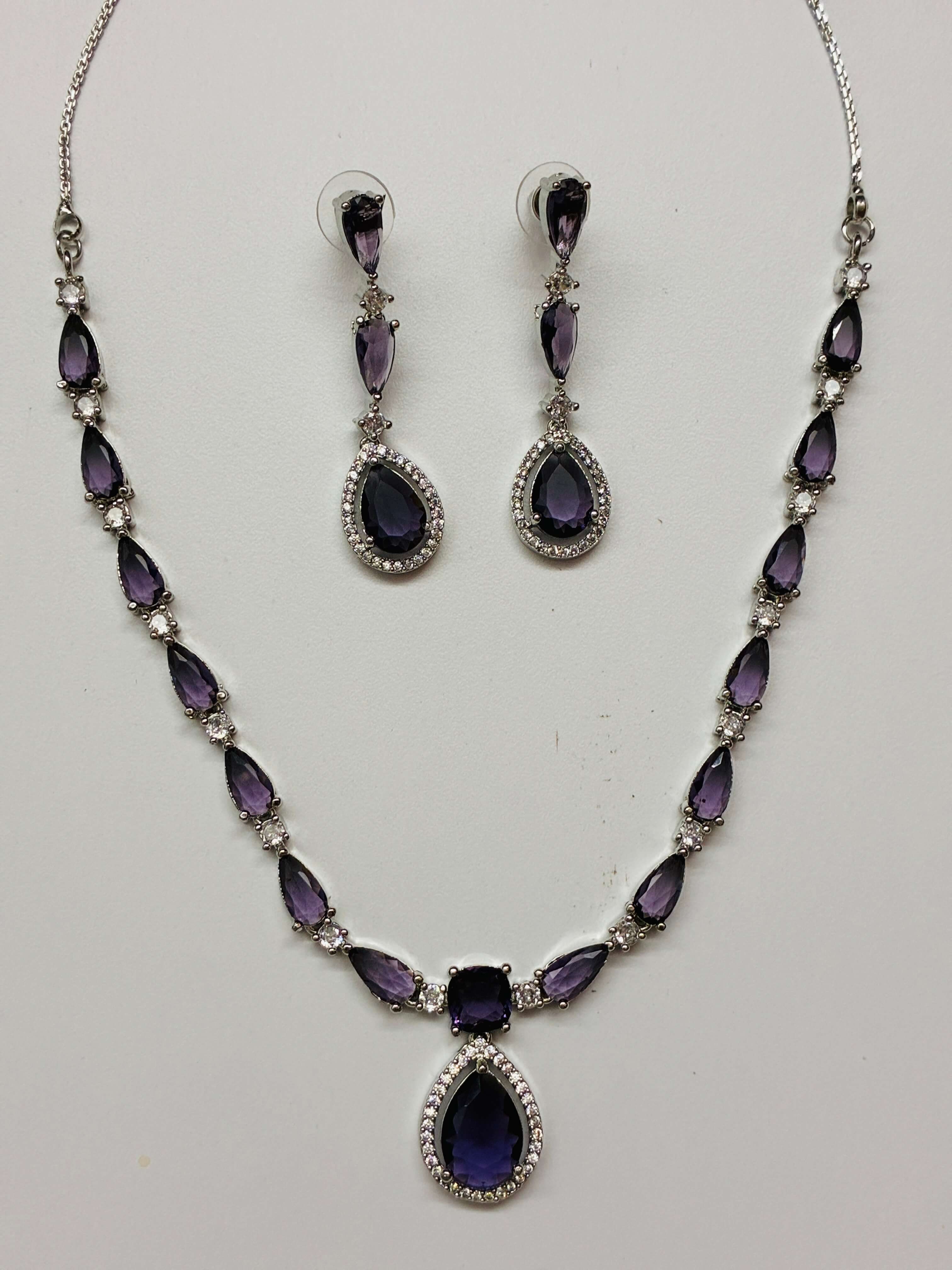 CZ Lavender Water Drop line Necklace Set