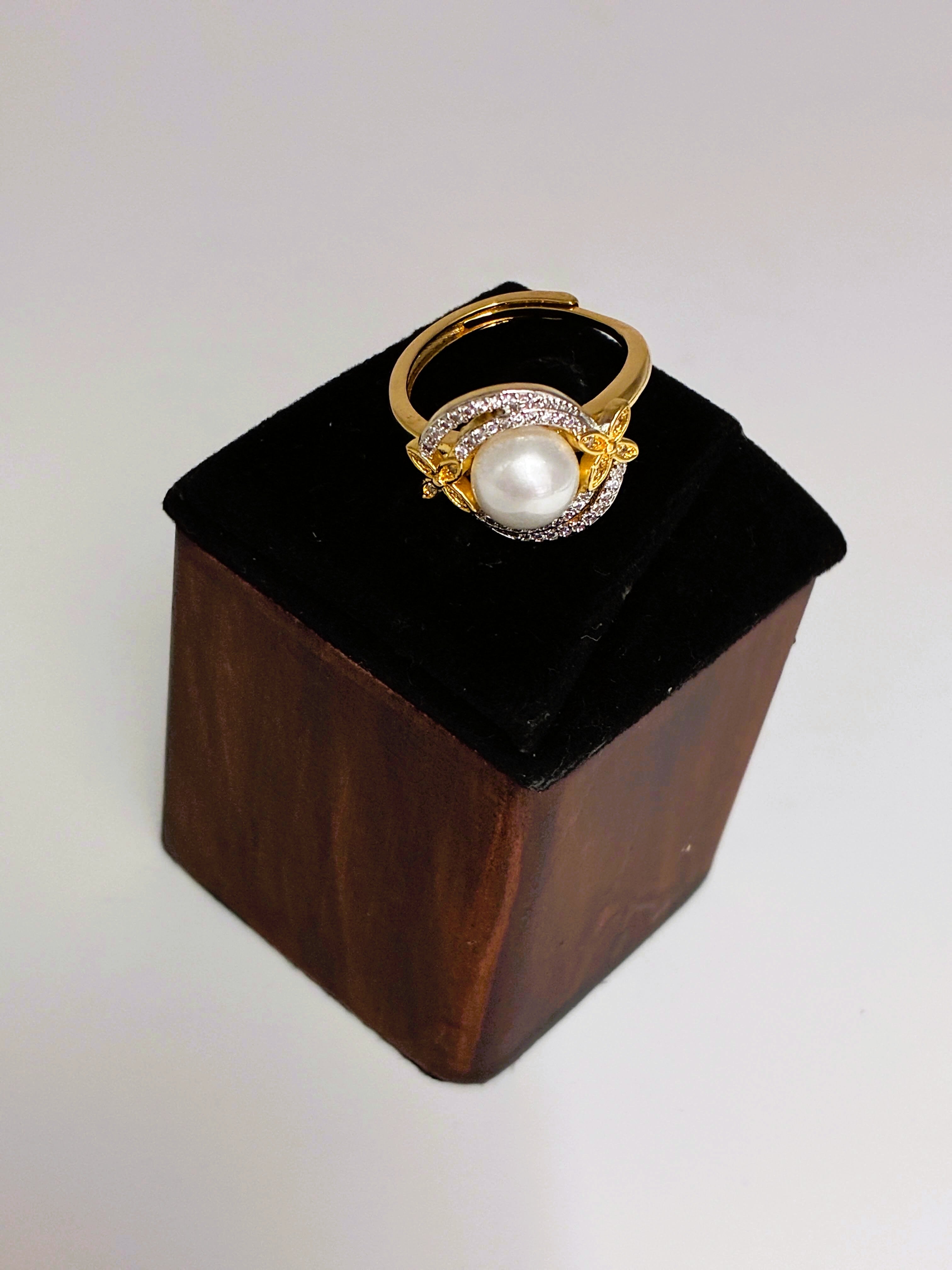 CZ Moti dual tone adjustable Finger Ring