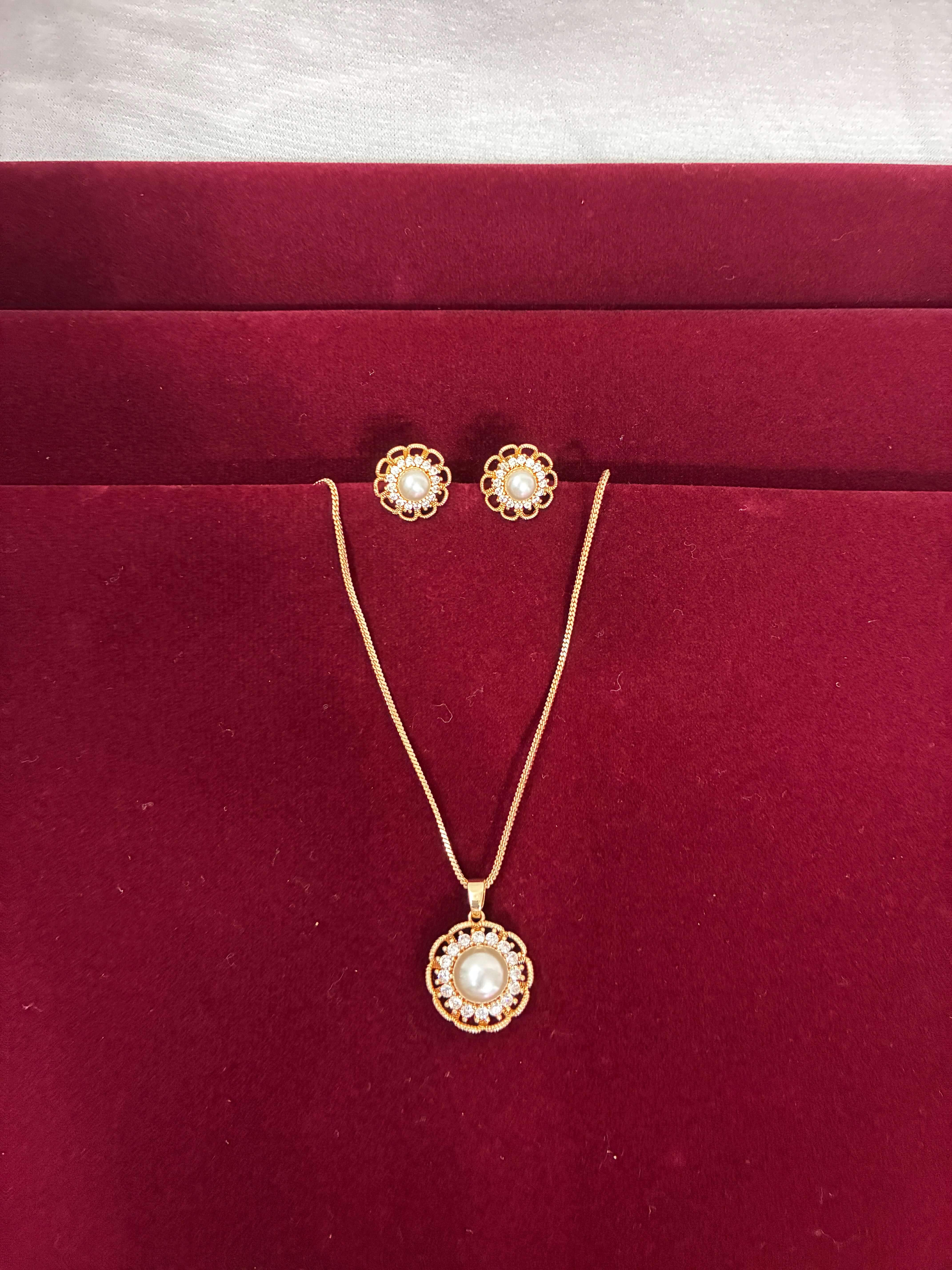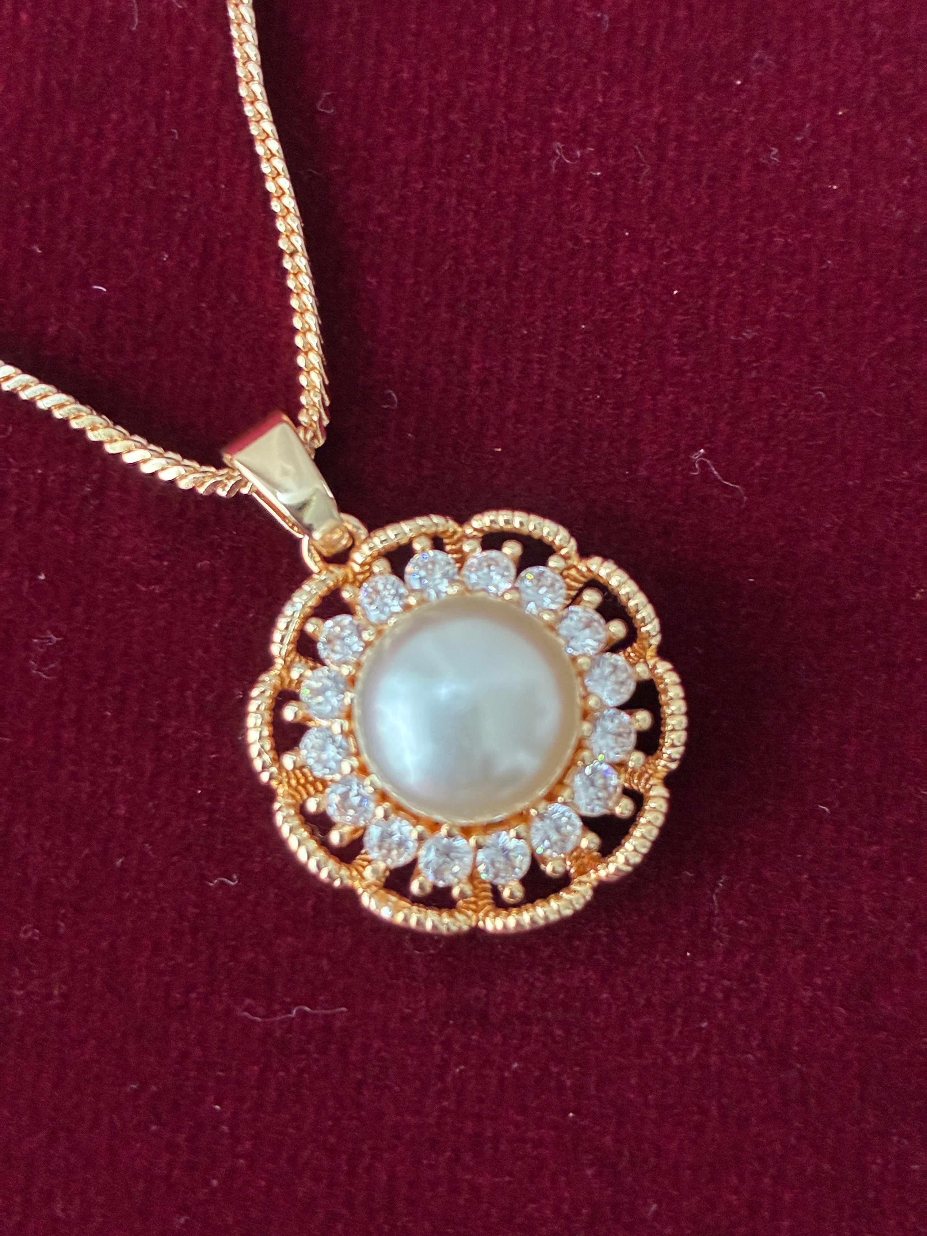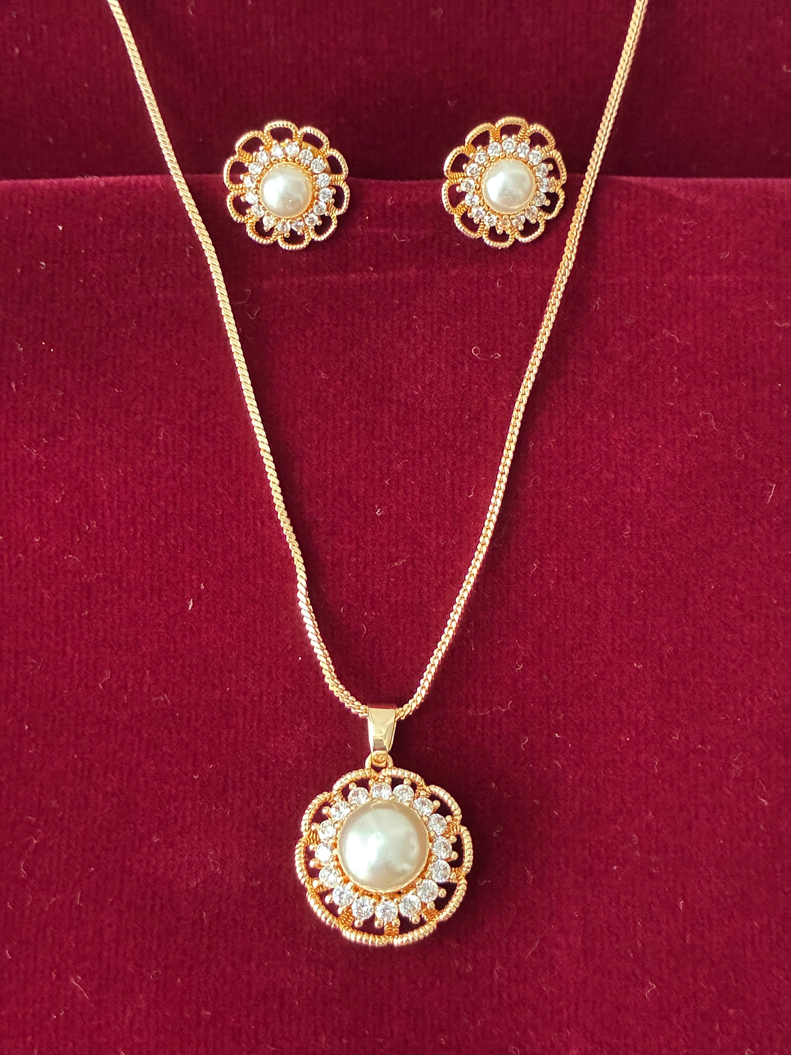 Product type: CZ Pearl Golden tone Blooming Pendant set