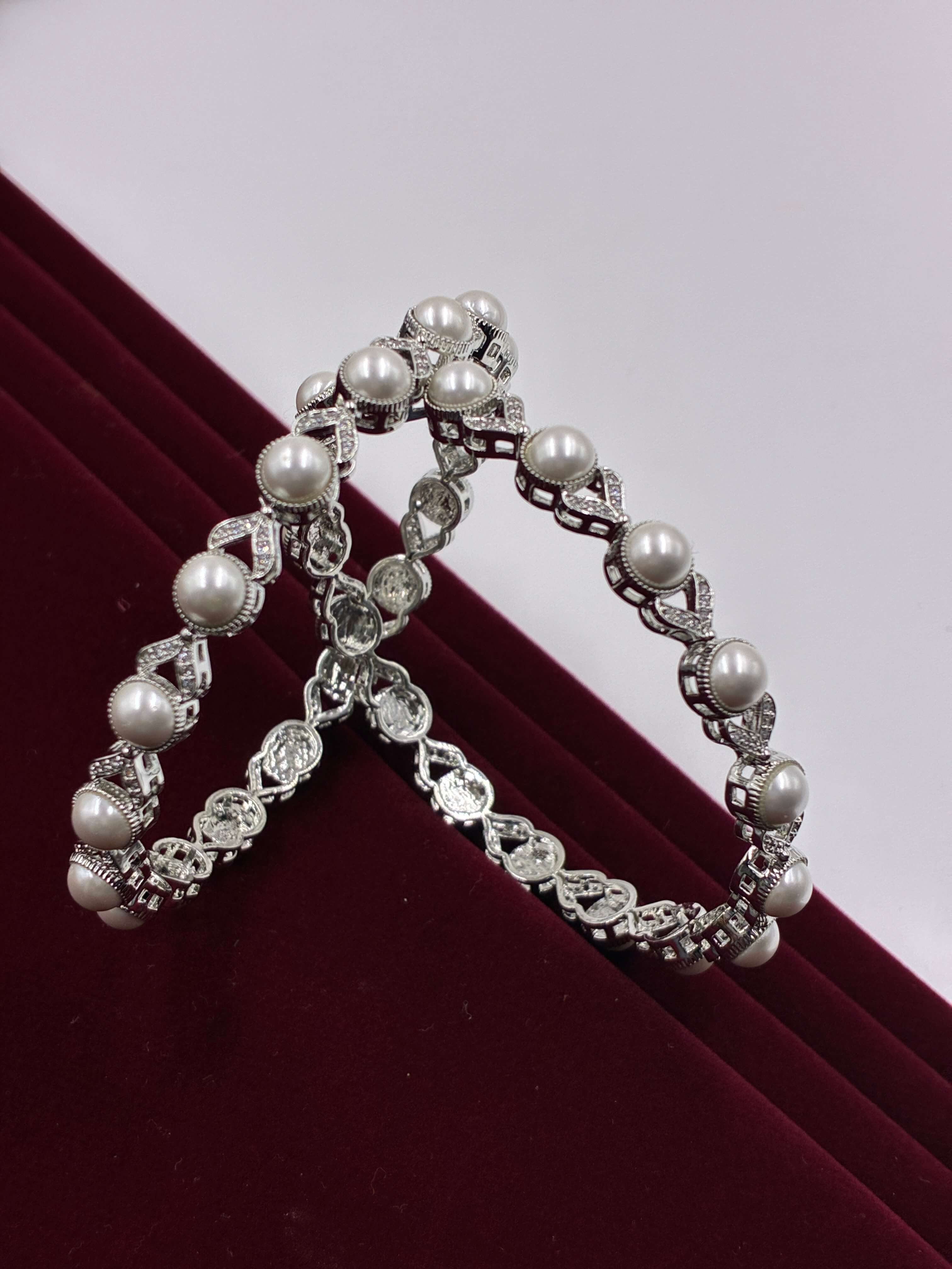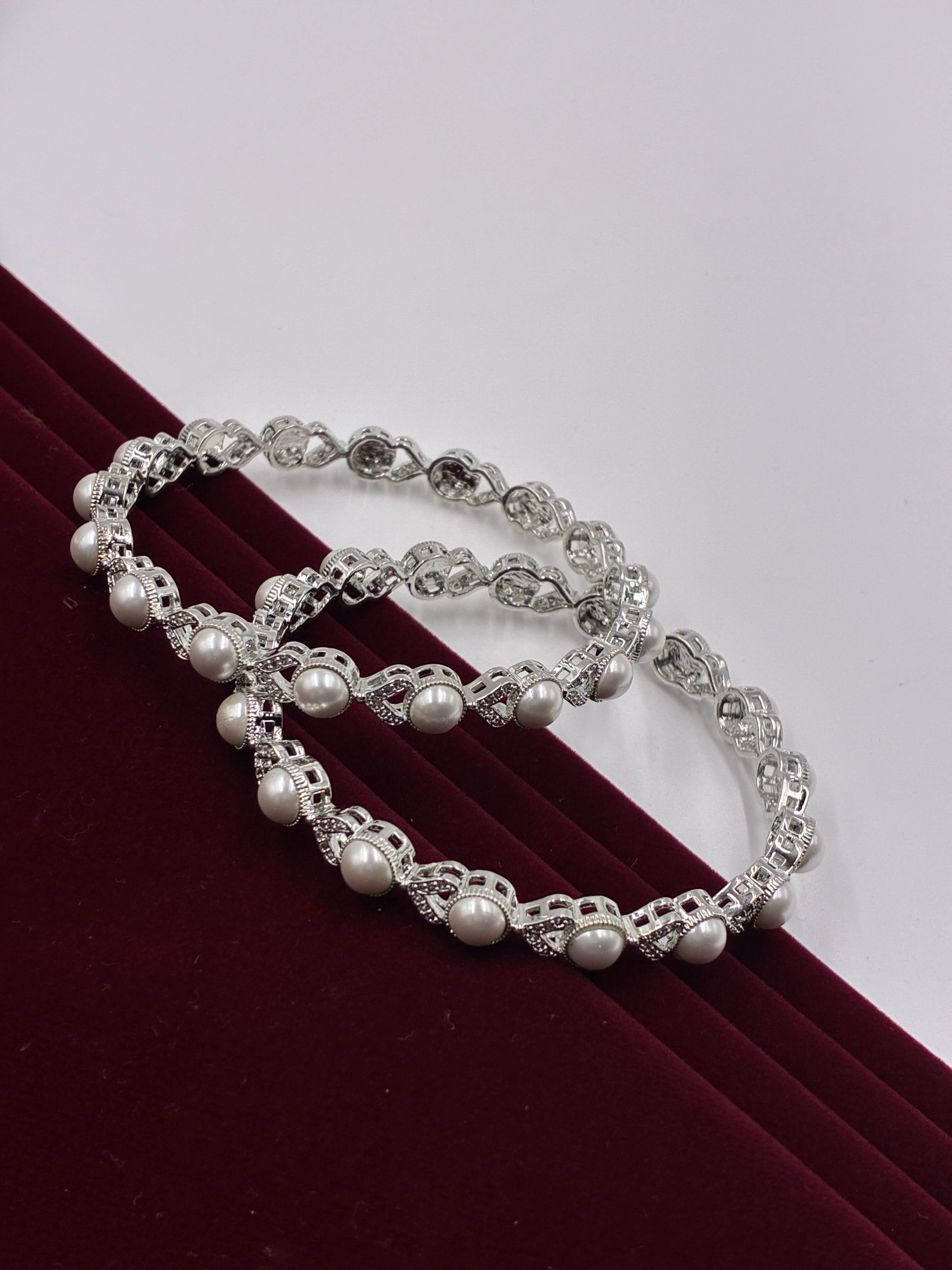Product type: CZ Pearl Silver tone Designer Bangle