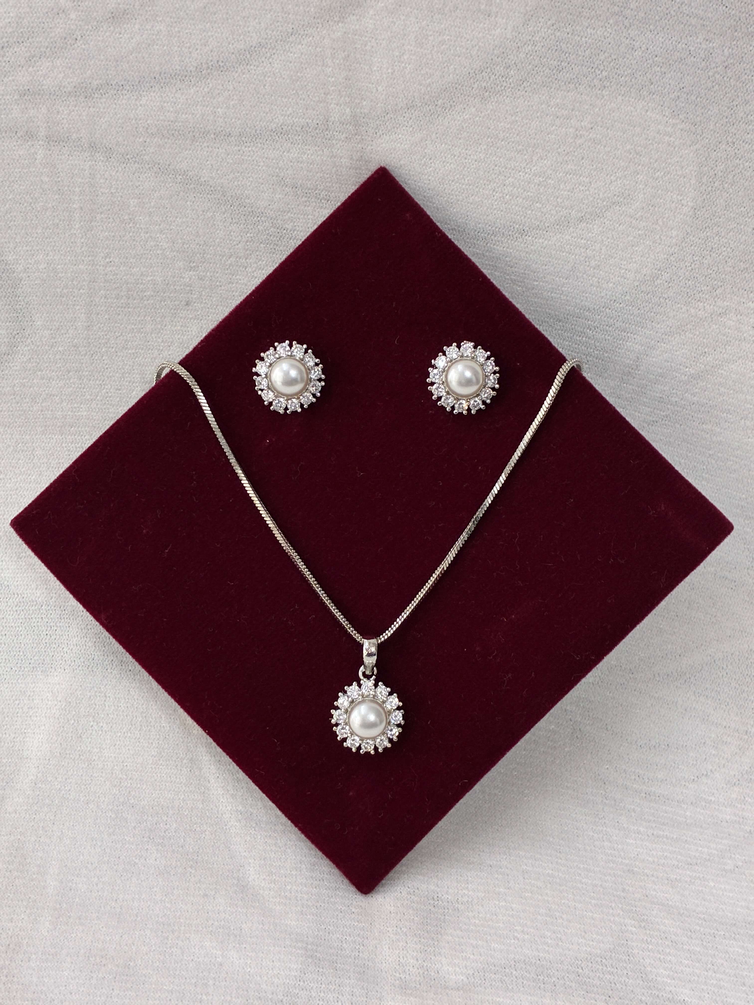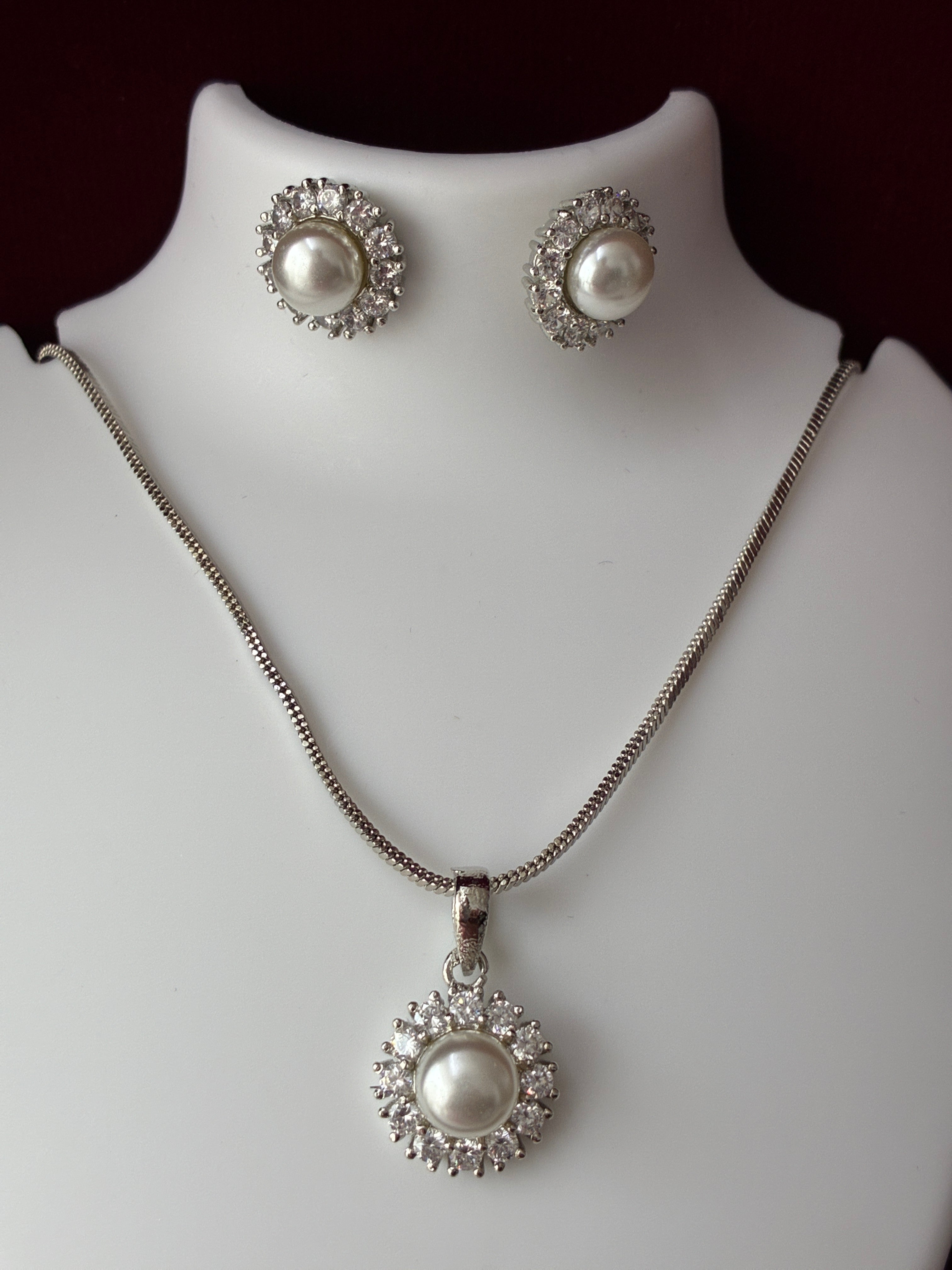 Product type: CZ Pearl Silver tone Floral Pendant set