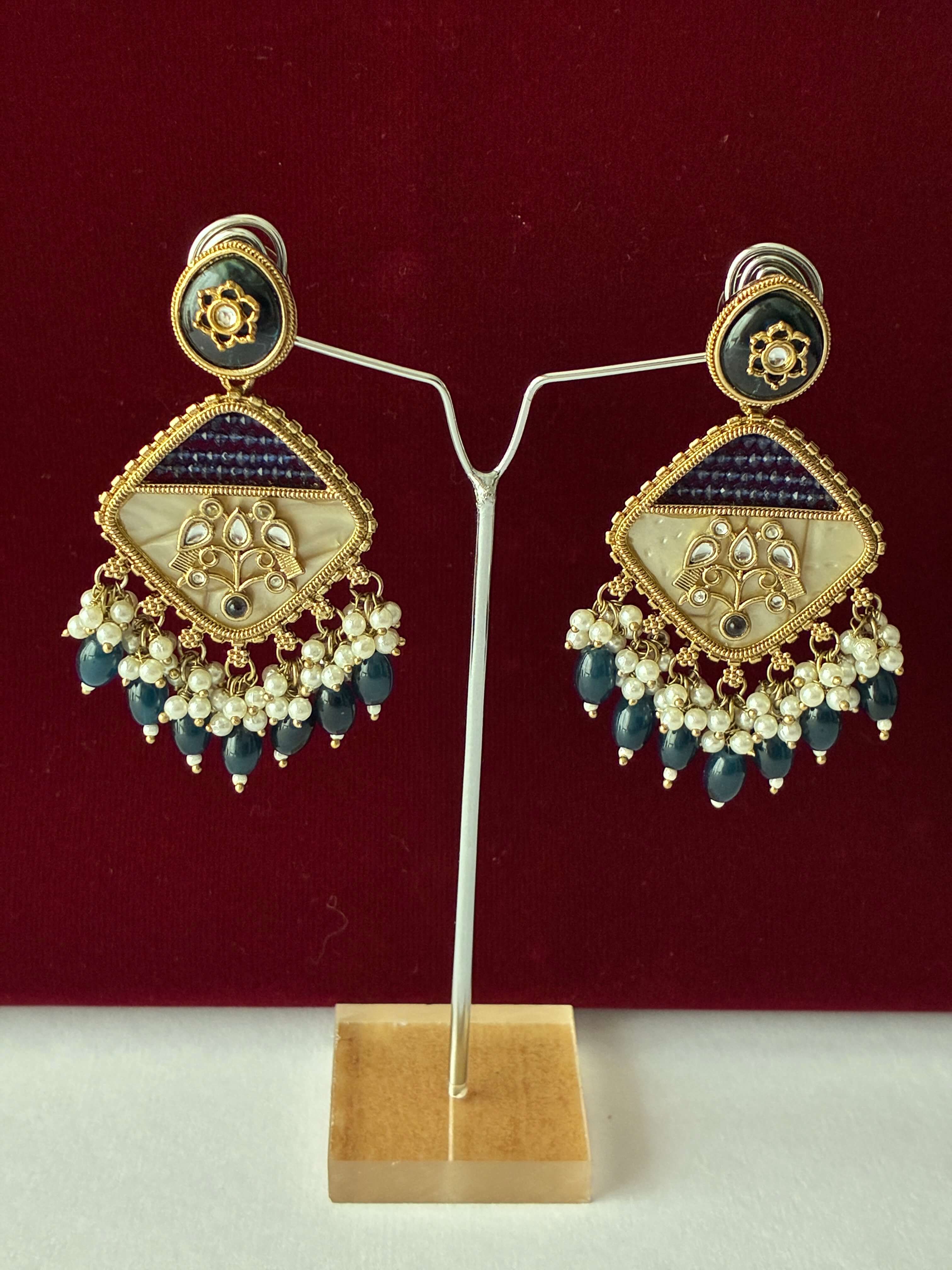 Indo Western Peacock Blue Mother of Pearl Earring
