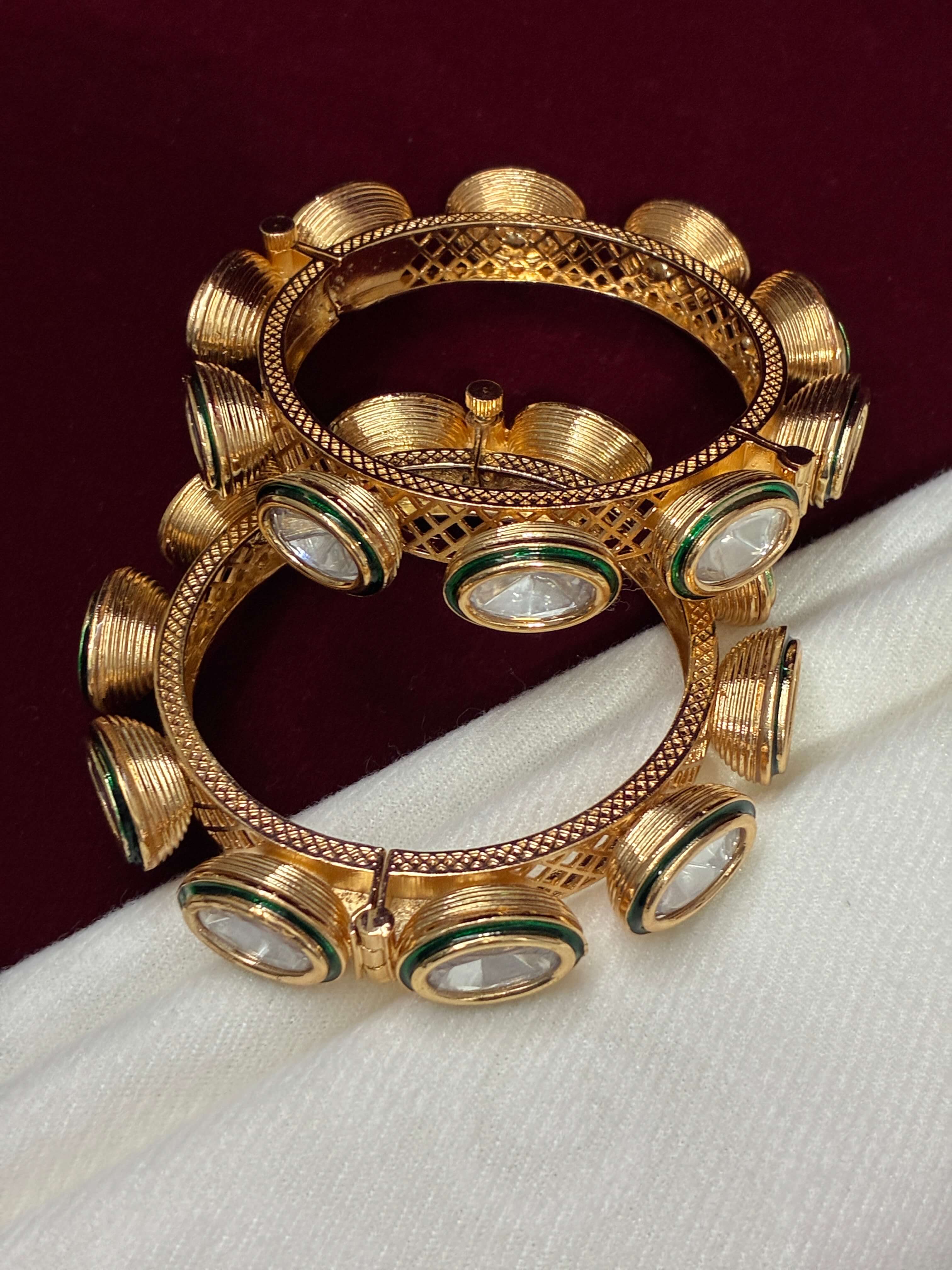 Product type: Kundan Elegant openable Bangle with Green Meenakari work