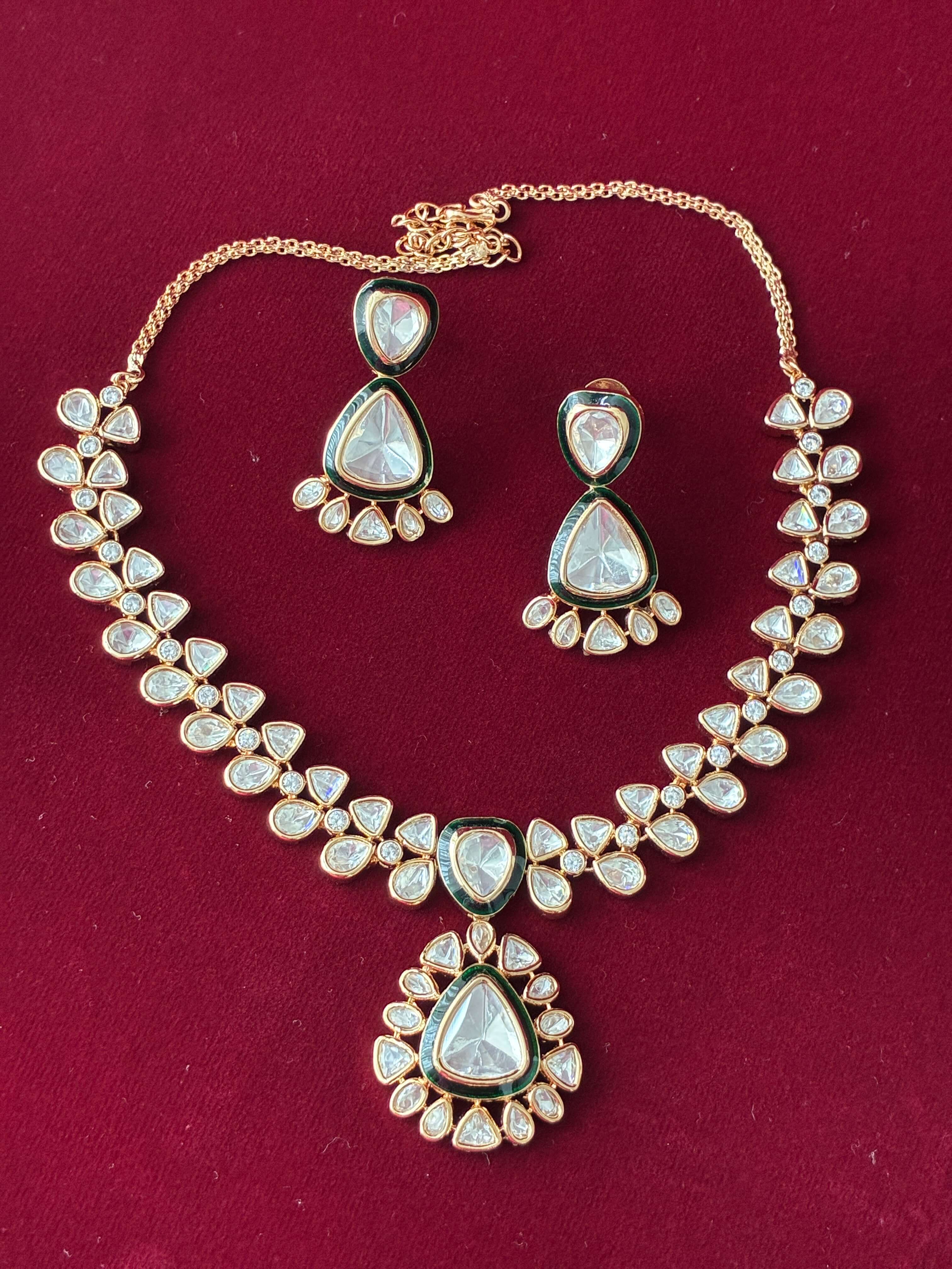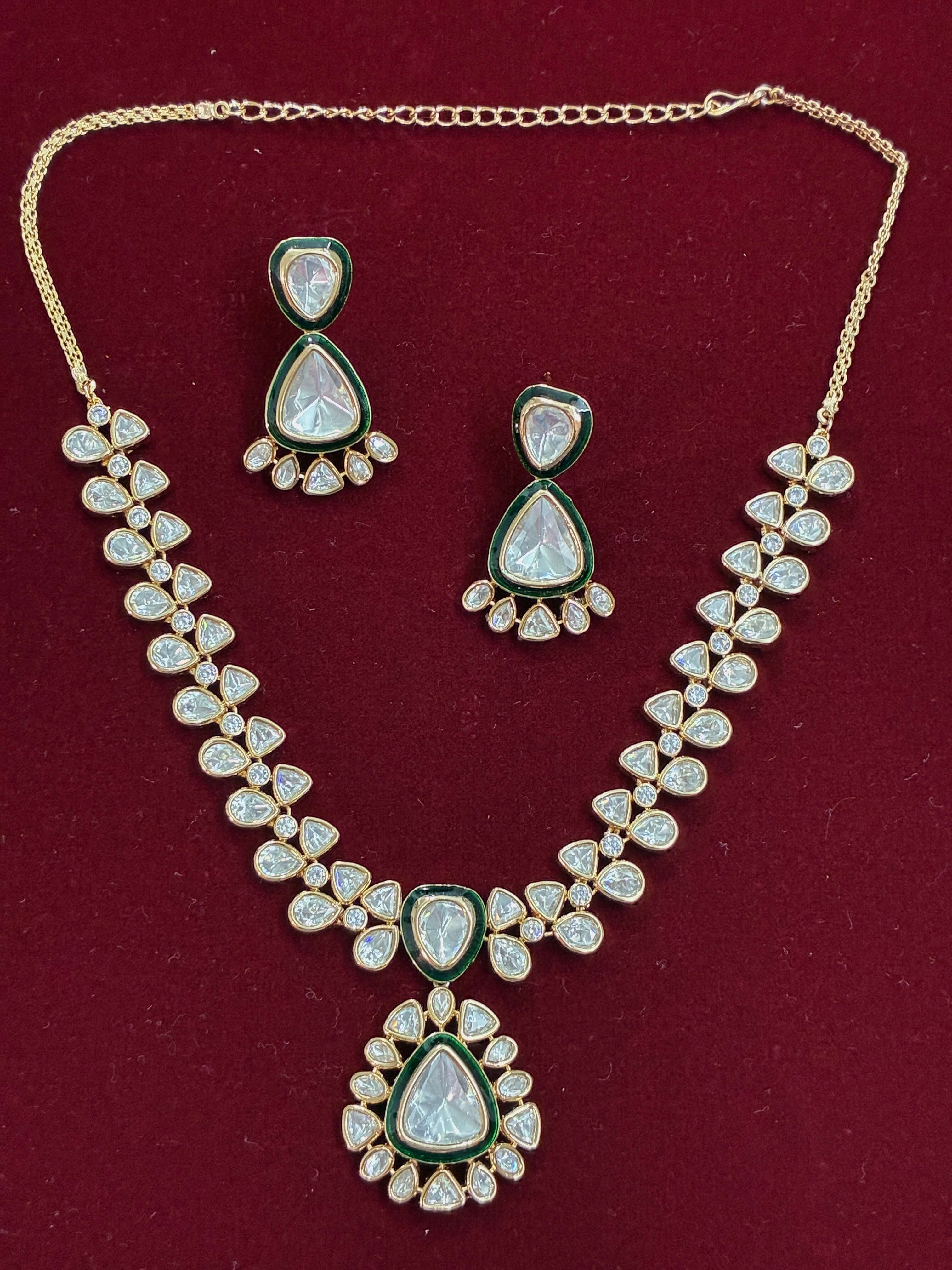 Kundan Emerald Green Meenakari Necklace set