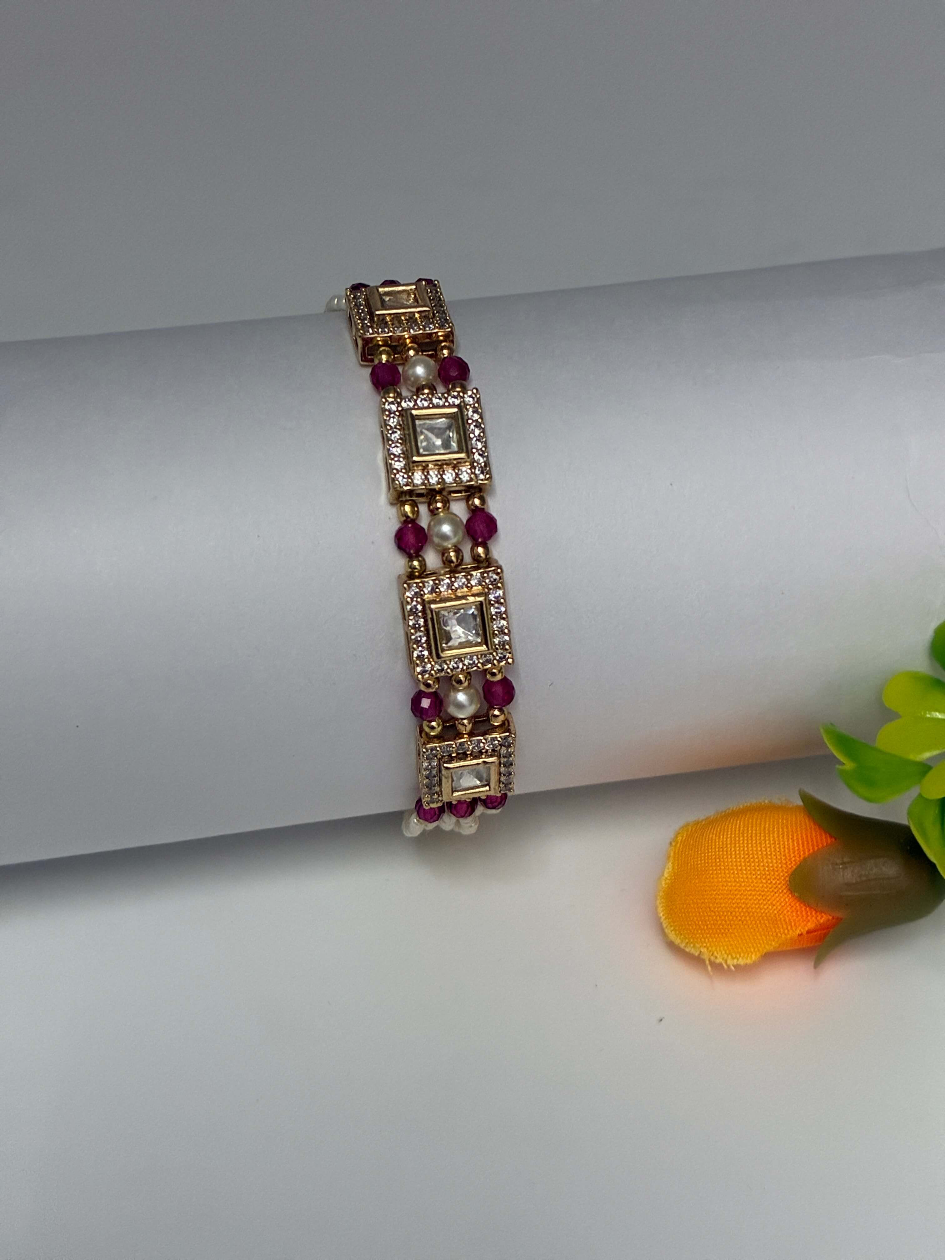 Product type: Kundan Ruby Beads Splendid Square Bracelet