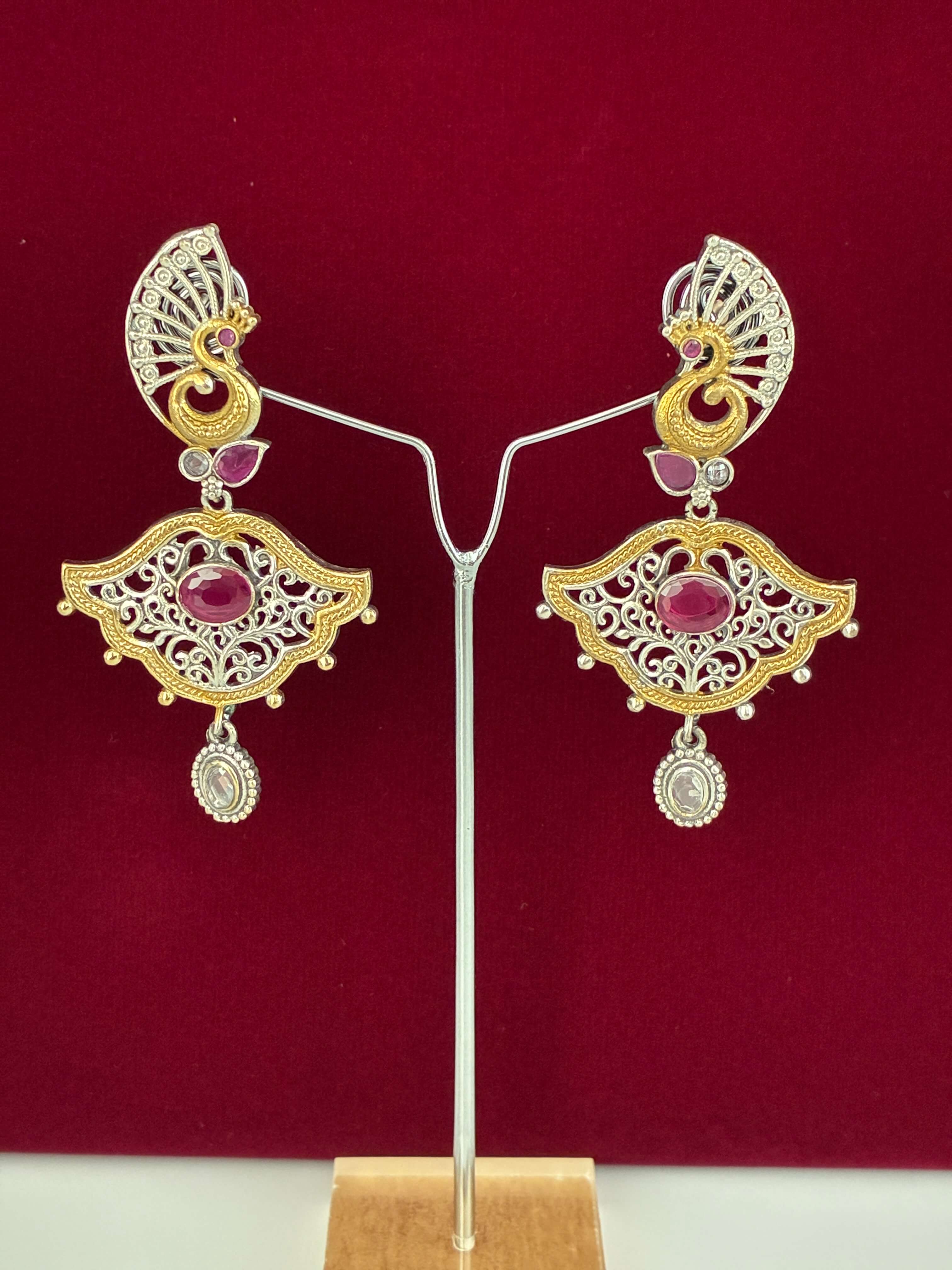 Product type: Oxidised Adorable Ruby Peacock Earring