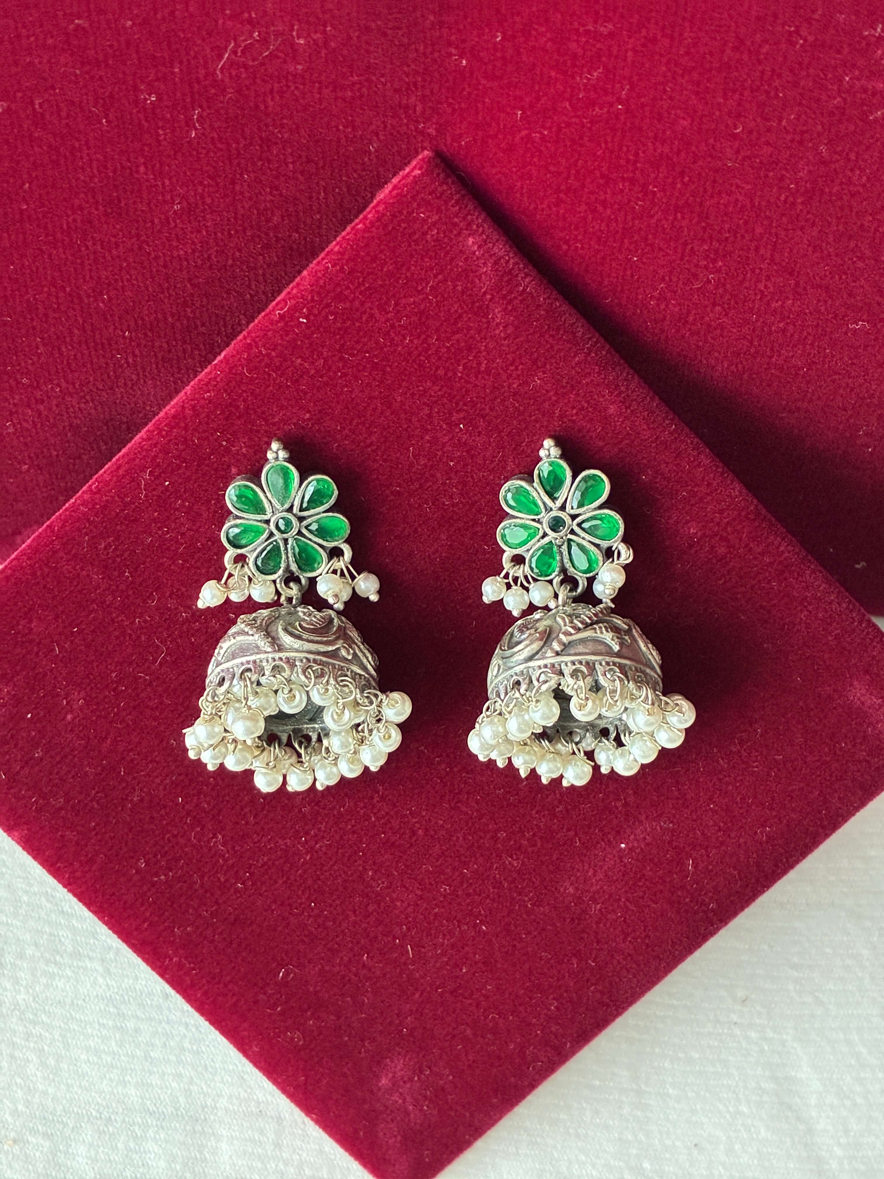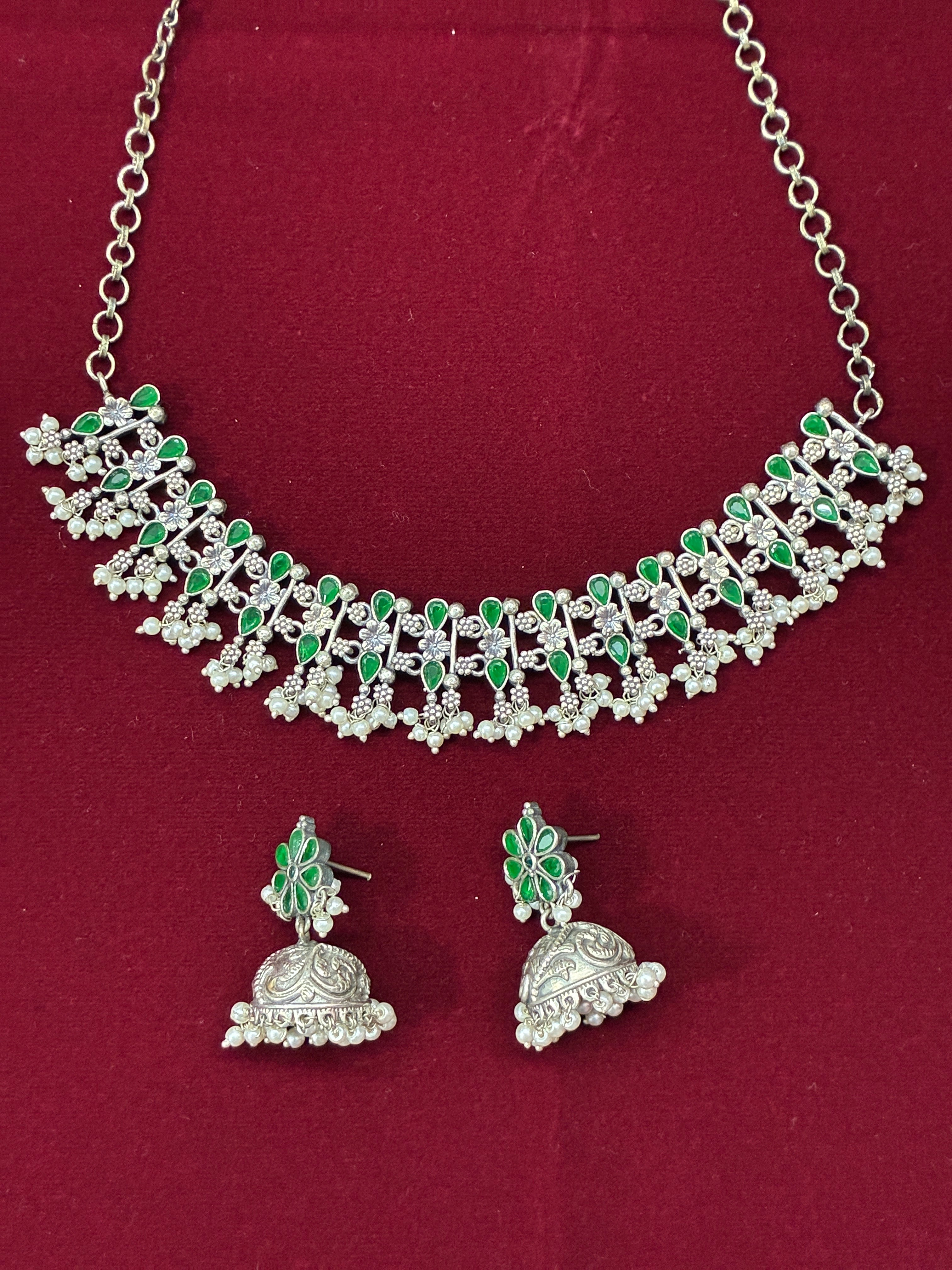 Product type: Oxidised Emerald Green Stone Moti Necklace set