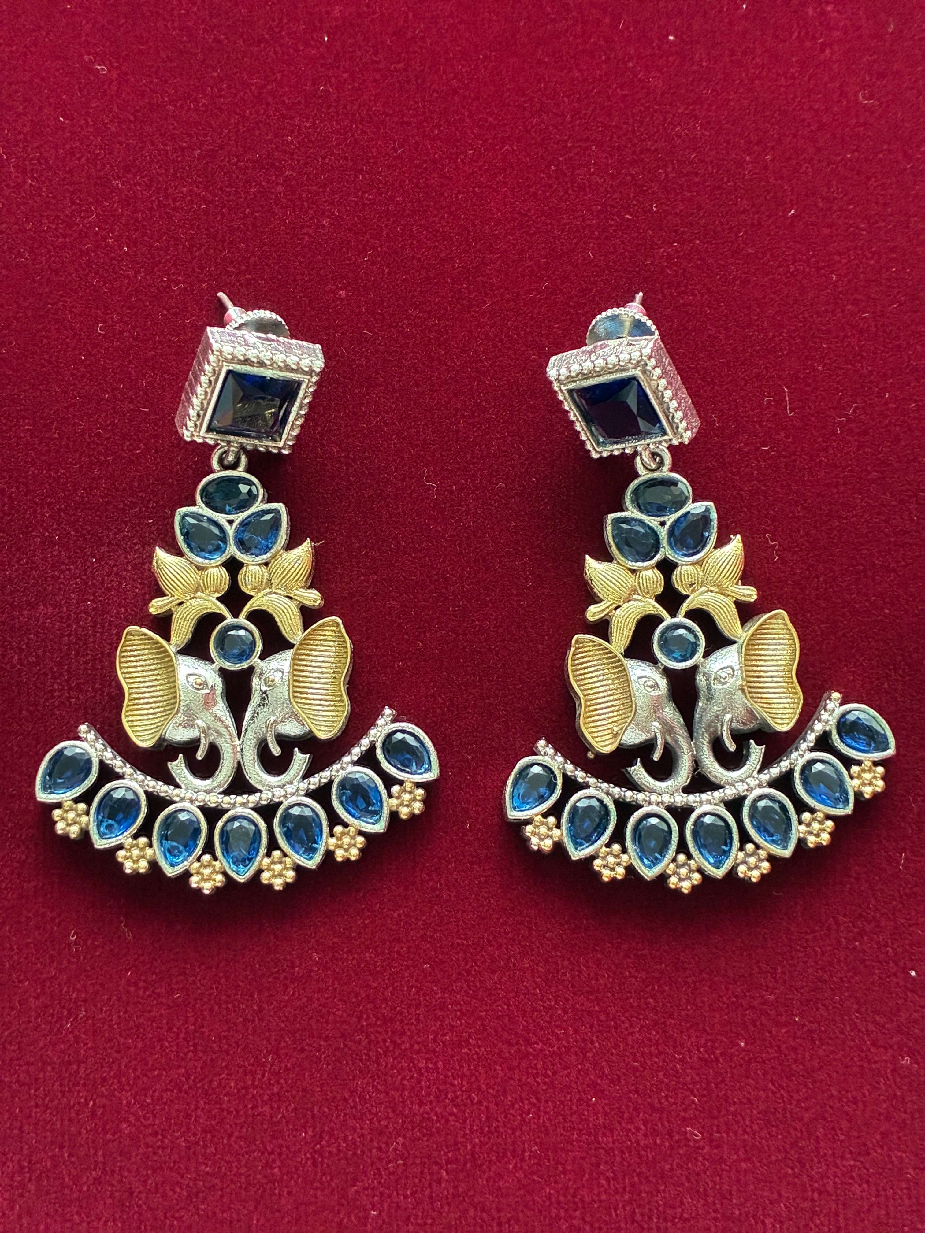Oxidised Saphire Blue Elephant Earring